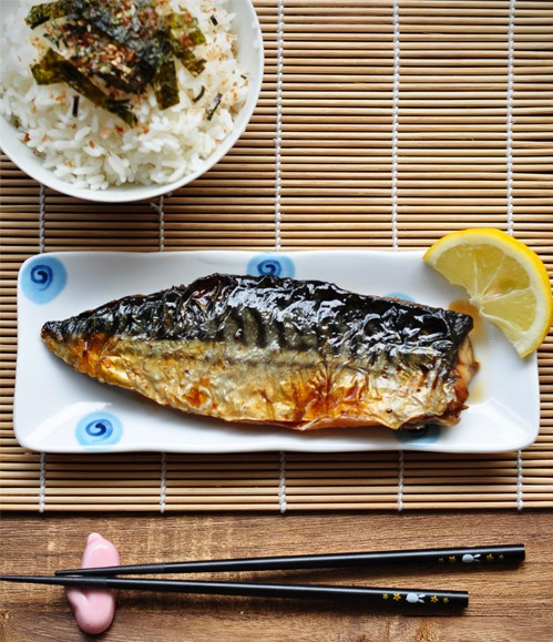 日式烤鱼 配料: 2片鲭鱼(马鲛鱼)排 半茶匙盐 2汤匙(HERMAN'S赫曼斯牌)日式烧烤酱 做法:1. 预先把烤箱加热到200摄氏度 2. 把鱼排用盐和橄榄油涂抹并腌制10分钟 3. 把带皮的那面鱼排烤5-10分钟或者待鱼皮变褐色,注意不要烤太久,否则鱼排会很干4 .把鱼排淋上(HERMAN’S赫曼斯牌)日式烧烤酱 5. 佐以一片柠檬和一碗撒有海苔的短粒米饭,即可。 |