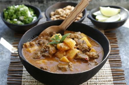 Massaman Beef Curry Ingredients: about 1 kg pot pieces of högrev or marrow pipe2 yellow onions, coarsely cut 3 garlic cloves, finely chopped 1 jalapeno, finely chopped with seeds and partitions. Alternatively, added 2 tablespoons finely chopped jalapeno salt and freshly ground black pepper 4 dl veal stock or water peanut or olive oil about 800 g of solid potato cultivar Bintje, Ukama or Asterix 2 ½ dl coconut milk 1 ½ dl HERMAN’S Massaman Curry Sauce grated rind and juice from one lime For serving: Torro loaded peanuts Any chutney 6 lime wedges 4 salad onions, thinly sliced 1 dl shredded green mint or coriander Preparation: 1. Heat up a good, heavy-bottomed saucepan with peanut oil. Brown the meat well all around. Do not put too much meat at a time. It is better to fry in batches. Then add onions, garlic and jalapeno and continue to fry everything in 8-10 minutes. Season with salt and black pepper. Pour in the fund and cover with lid. Reduce the heat and let it simmer for about 1 hours or until the meat feels soft. 2nd Then add potatoes, coconut milk and HERMAN’S Massaman Curry Sauce. Let it simmer until potatoes are soft. Stir in the bottom at regular intervals so that it does not stick. Finish by moving down the lime peel and juice and season with salt and black pepper. Serving: Put in soup plates and serve with the accessories.